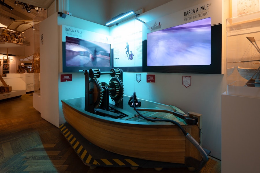 Hier können Sie mehr als 200 funktionierende Modelle seiner Erfindungen erkunden und digitalisierte Restaurierungen seiner Meisterwerke bewundern, darunter spezielle Module zu Das letzte Abendmahl und Die Dame mit dem Hermelin.