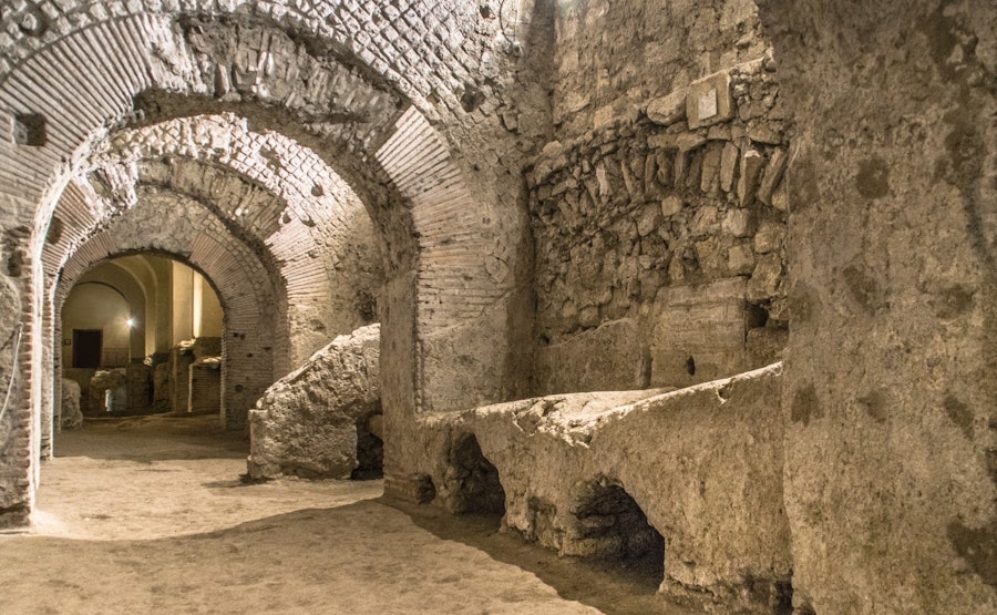 Entdecken Sie den faszinierenden archäologischen Komplex von Neapolis Sotterrata, der sich unter der Basilika San Lorenzo Maggiore befindet. Dieser Ort versetzt Sie in die kaiserliche Zeit zurück und zeigt Ihnen die Überreste der antiken griechischen Stadt. Von kleinen Straßen bis hin zum Cryptoportico, dem überdachten Markt, finden Sie hier ein Fenster in die Geschichte der Stadt.