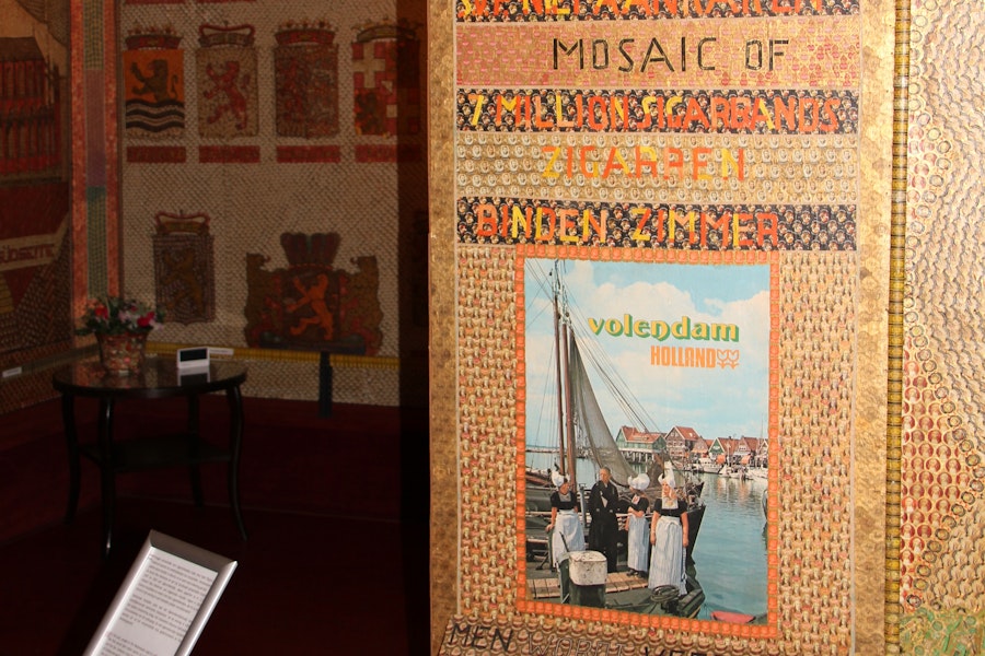 Mit Ihrem "Skip the line"-Ticket haben Sie direkten Zugang zu den Ausstellungsräumen und dem außergewöhnlichen "Zigarrenmosaik", einer Collage aus fast 11 Millionen Tabakringen, die biblische und Seefahrtsszenen darstellen. Während des Besuchs begleitet Sie ein Audioguide auf Spanisch, Englisch, Deutsch und Niederländisch (kann auf Ihr Mobiltelefon heruntergeladen werden) mit Anekdoten über das Museum.Während des Besuchs begleitet Sie ein Audioguide auf Spanisch, Englisch, Deutsch und Niederländisch (auf Ihr Mobiltelefon herunterladbar) mit Anekdoten über den Heringsfang, den Bau der Polder und die Geschichte der Tavernen mit Volksmusik.